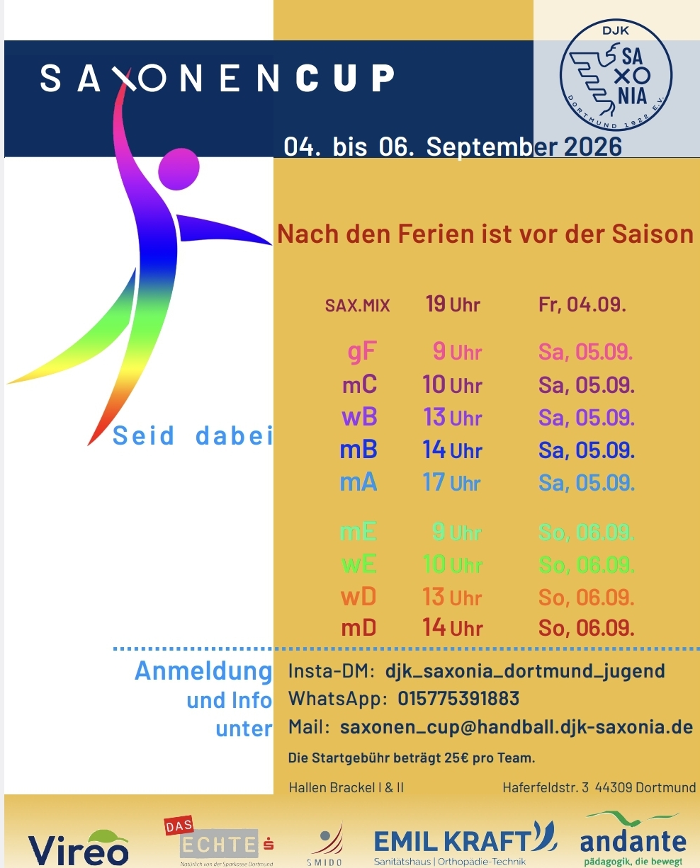 | 05.-06.09.2026 | Saxonencup | A-Jgd., B-Jgd., C-Jgd., D-Jgd., E-Jgd., Minis | Halle | DJK Saxonia Dortmund | Dortmund-Brackel | Ausschreibung |